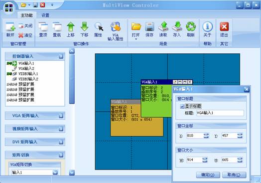 長(zhǎng)虹外置處理器拼接軟件,模塊清晰,操作簡(jiǎn)單,PC機(jī)通過(guò)RS-232或網(wǎng)絡(luò)連接方式,連接大屏處理器來(lái)控制大屏的顯示模式,可清楚的顯示每個(gè)輸入信號(hào)在線情況,通過(guò)控制軟件可實(shí)現(xiàn)圖像的任意拼接。軟件可以儲(chǔ)存多個(gè)設(shè)置模式,然后在需要顯示不同設(shè)置的模式時(shí)隨意讀取即可。