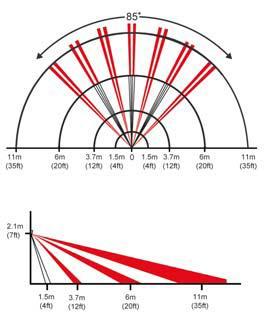 - 2.8米高度安裝時(shí):7 m x 6m